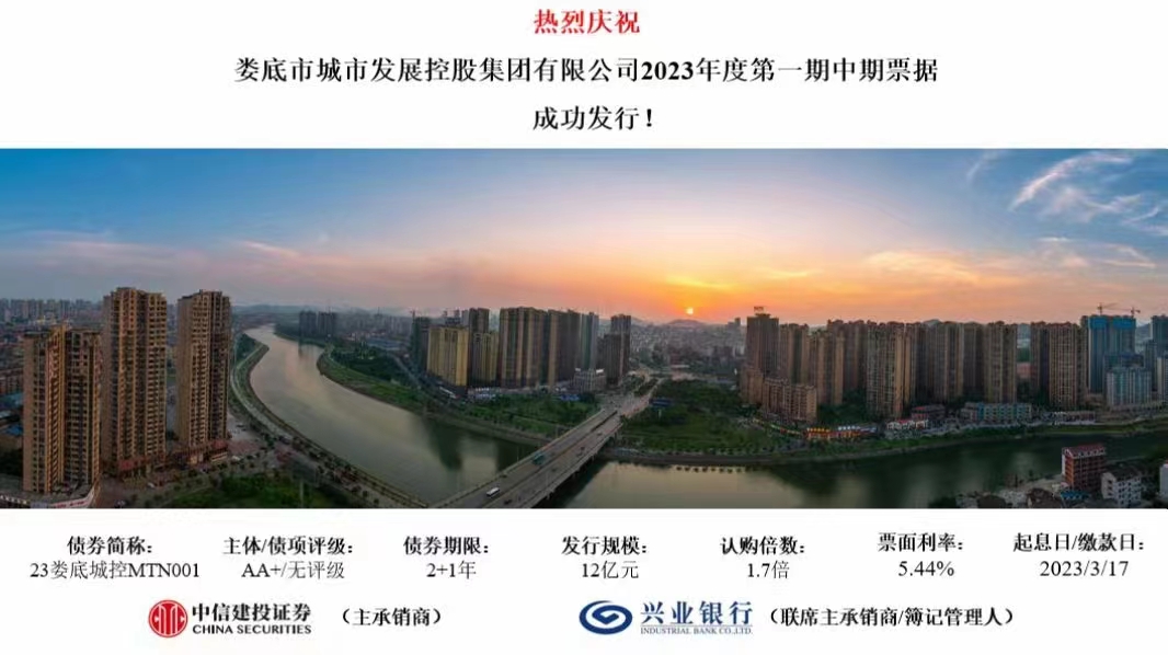 3月17日,市城發(fā)控股集團(tuán)2023年第一期中期票據(jù)成功發(fā)行,規(guī)模12億元,發(fā)行期限2+1年,票面利率5.44%。